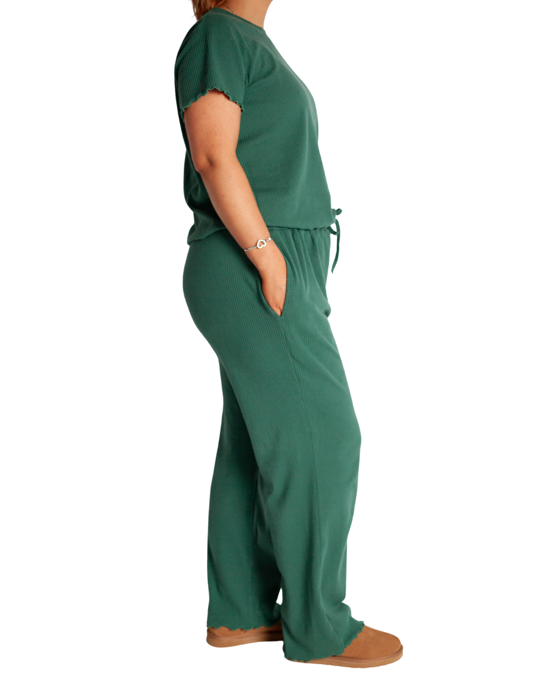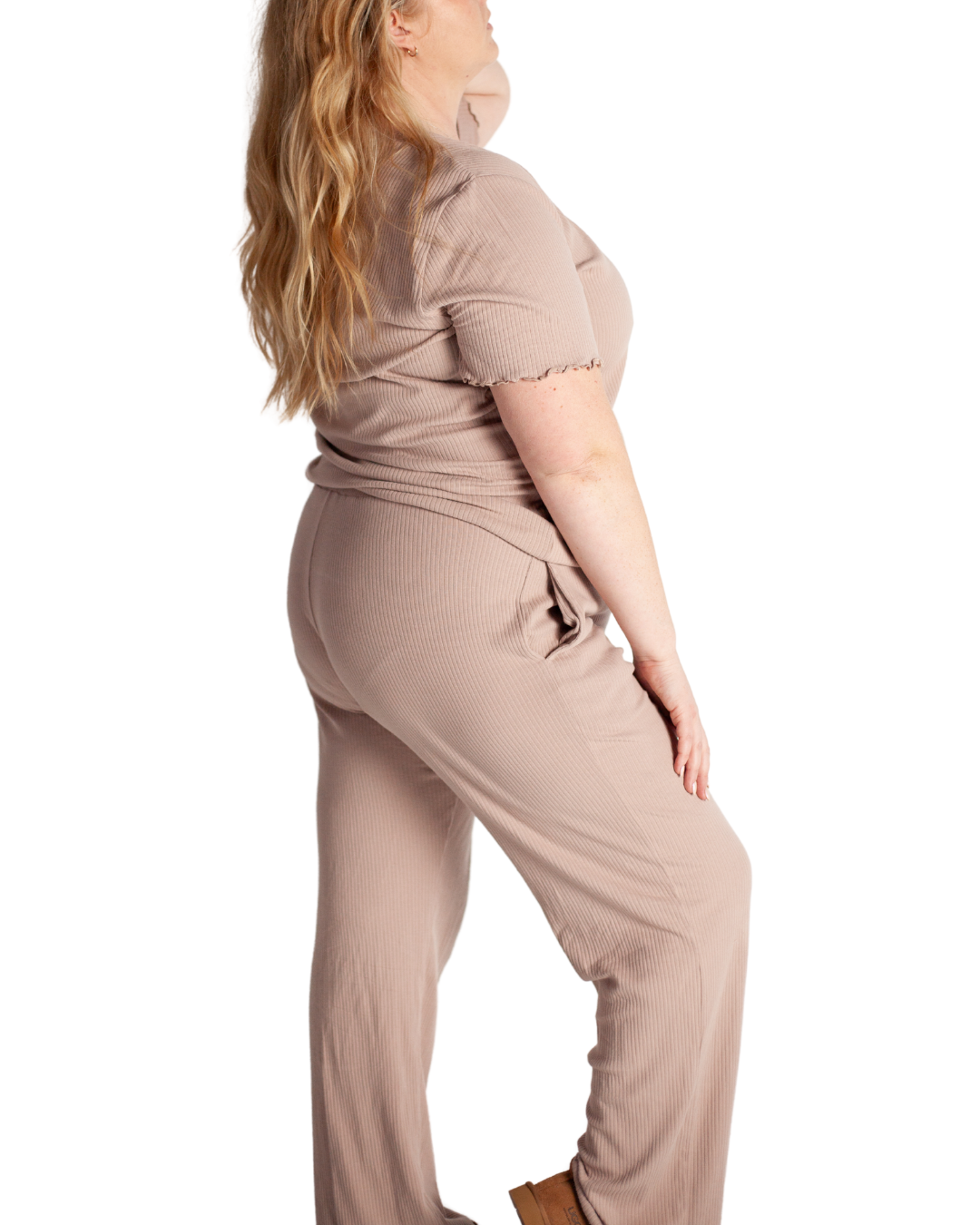 The Rituals Pants offer that perfect in-between — loose, fluid, and luxe. With a wide-leg silhouette and soft stretch waistband, they move with you from morning rituals to evening wind-downs. Wear them high-waisted or slouchy, paired with the matching shirt for your ultimate lounge set.